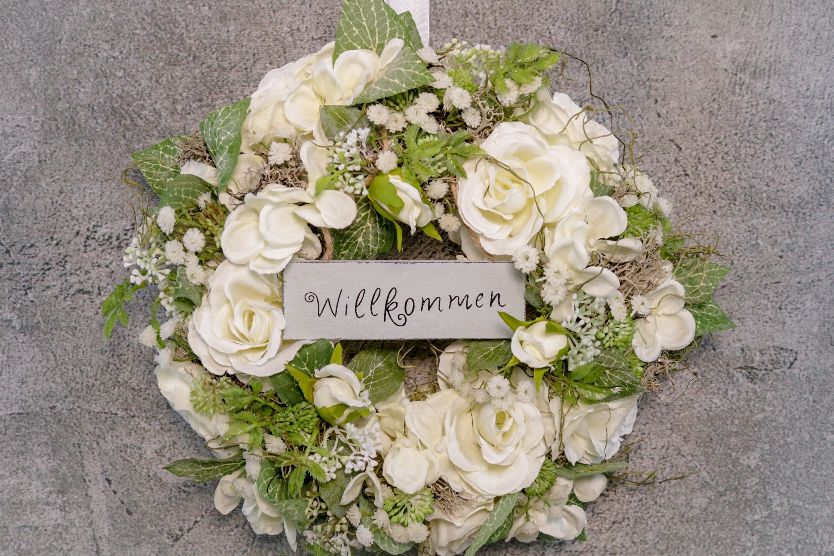 Door Wreath Welcome Rose Modern Year Round Door Veil Hydrangea Etsy